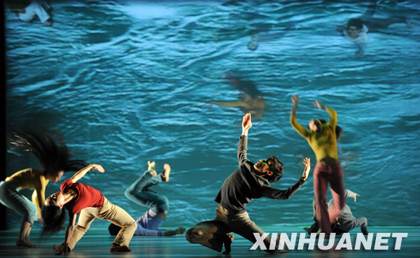 3月18日,舞蹈演員在舞劇《聽河》首演前排練。當晚,云門舞集藝術總監林懷民新作《聽河》在臺北戲劇院舉行全球首演。《聽河》讓舞者與河流影像共舞,結合幻燈影像顛覆云門美學。林懷民介紹,為了呈現水世界的涓涓細流和壯闊瀑布,制作團隊曾四處拍攝各地河流影像。新華社發(吳景騰 攝)