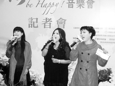 圖為臺(tái)灣聲樂家簡(jiǎn)文秀(右一)等在記者會(huì)上演唱歌曲“甜蜜蜜”。圖片來(lái)源:人民日?qǐng)?bào)海外版