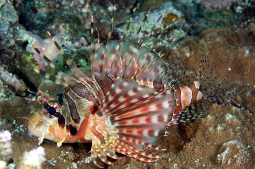 “斑馬紋多臂蓑(魚由)”是獅子魚的一種,鮮艷美麗,卻深具毒性,臺灣海洋生物博物館近期展出“毒領風騷-有毒生物特展”,以活體展示“海洋美麗殺手”。 圖片來源:“中央社”