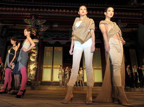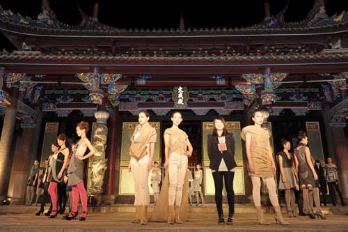 臺北市文化局舉辦第7屆漢字文化節,“自成風尚”服裝秀17日晚以孔廟大成殿回廊作為伸展臺,共展出41套設計作品。主辦單位2011年首度邀請實踐大學服裝設計學系、輔仁大學織品服裝學系師生參與,由知名服裝設計師陳季敏擔任創意指導,以工作坊方式進行創作,并提供補助金給學生設計師。