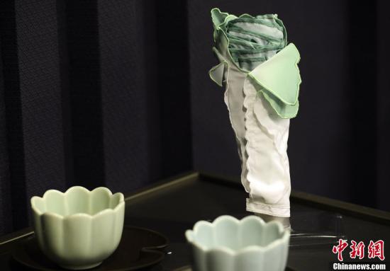 資料圖:根據(jù)臺北故宮鎮(zhèn)宮之寶翠玉白菜設(shè)計(jì)的“翠玉白菜傘”。中新社發(fā) 劉震 攝