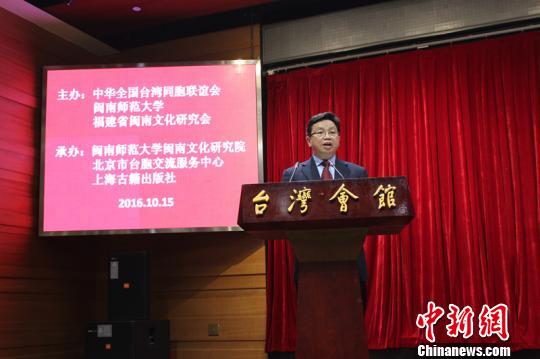 由全國(guó)臺(tái)聯(lián)、閩南師范大學(xué)主辦的《臺(tái)灣族譜匯編》新書全國(guó)首發(fā)式15日下午在北京臺(tái)灣會(huì)館舉行。