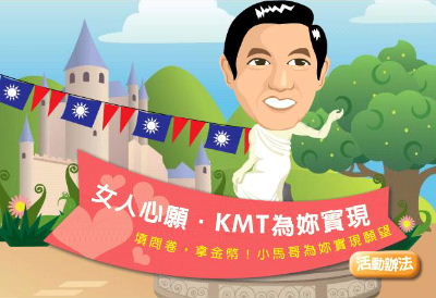 據臺灣媒體報道,馬英九的英挺帥氣迷倒不少女性,早已是眾所皆知,F在,在國民黨網站上出現了這樣的宣傳活動,如果答對了11個相關問題,并許下婦女節的心愿,最后獲得第一名的女性,3月8日當天便可以與馬英九相會,并由他親自幫忙實現愿望。