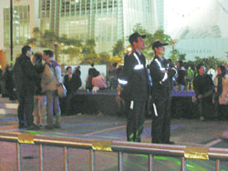 現場氣氛尷尬,因舞臺前主辦單位還安排了兩位真警察站崗,兩位警察見狀,一動也不動。記者問:“你看了覺得如何?”警察氣憤地說:“有很多人來問我,但那些一看就知道是假的。”據悉,最后該活動仍選出比基尼冠軍,巧的是,得獎的女子又是脫掉比基尼用手遮住重點的舞者。