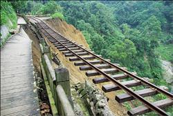 中新網10月15日電 阿里山森林鐵路再傳新災情,該鐵路一路段12日下午發生走山,近70米路基轟然一聲,滑落近百米深的山谷中,僅剩鐵軌如吊掛鋼絲,懸掛半空中,所幸森鐵早已因風災受創未搶通而停駛中,無人傷亡。鐵路通車期因此從原來的11月底,延后到明年1月底。