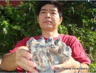 地方文物工作者王鎮炎手上的化石是在大甲溪流域發現的,經古象專家鑒定,證實是臺首次發現乳齒象化石。 臺灣今日新聞圖