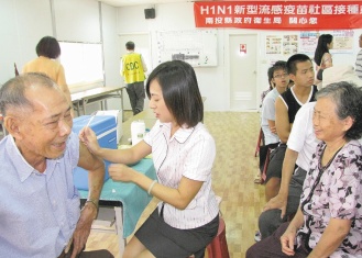 南投縣水里鄉新山悅城村102名八八風災災民,昨天率先施打甲型流感疫苗。來源:臺灣《聯合報》