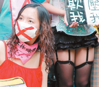 臺灣日日春關懷協會等社運團體多次走上街頭,要求廢除罰娼條款。臺灣《聯合報》資料照片