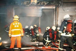 臺北市一棟民宅一樓,因存放爆竹,21日晚間9時不明原因起火,造成2死5傷,其中屋主2歲的兒子死亡,包括一名警消受傷。圖片來源:臺灣《中國時報》