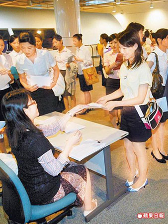 臺灣華航公關(guān)處長陳鵬宇昨日表示,開放網(wǎng)絡(luò)報名的13天時限中,報考人數(shù)超過8000人,是歷年來報考人數(shù)最多的一年,報考者平均年齡為24歲,以女性居多,其中具研究所以上學歷者達350人,較上次2007年招募時增加7倍,可見華航空服員已高學歷化。今年報考熱烈,分析與過去3年未招募空服員有關(guān)。
