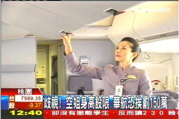 華航發(fā)言人陳鵬宇:“國(guó)際民航組織規(guī)定,我們的空服員要到一定身高,才能夠使用到服務(wù)設(shè)施。”