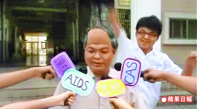 “邱毅”假發被扯掉。圖片來源:臺灣《蘋果日報》