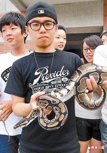 中國臺灣網6月16日消息 據臺灣《蘋果日報》報道,“啊!學校里有蛇!”臺南縣歸仁鄉長榮大學校內昨驚叫聲連連,原來是企管系大四男生卓佳逸帶來18條寵物蛇,秀給同學試膽。