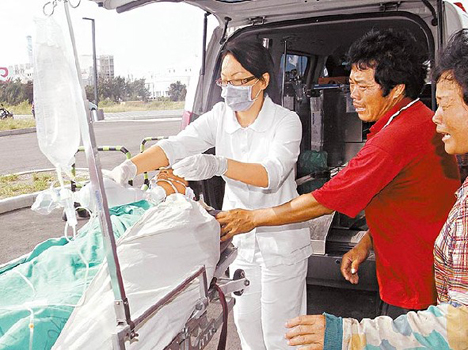工人張景富被送醫時已經沒有氣息。圖片來源:臺灣蘋果日報