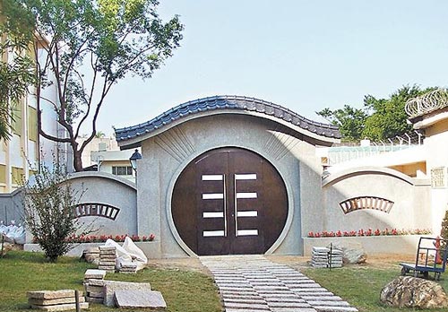 臺(tái)中監(jiān)獄附設(shè)培德醫(yī)院的女受刑人重病區(qū)入口,有中式大門和圍墻外觀。