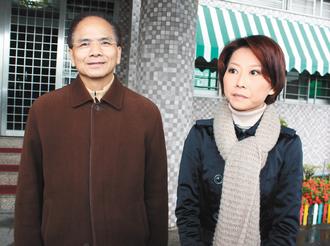前“行政院長”游錫堃(左)、“立委”陳亭妃(右)昨天探扁關心身體,指“感覺扁有點虛胖”。圖片來源:臺灣《聯合報》