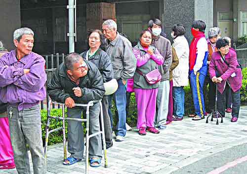 不在陳光標發放紅包名冊的一百多名民眾,昨到南投縣府外排隊試運氣。圖片來自網絡