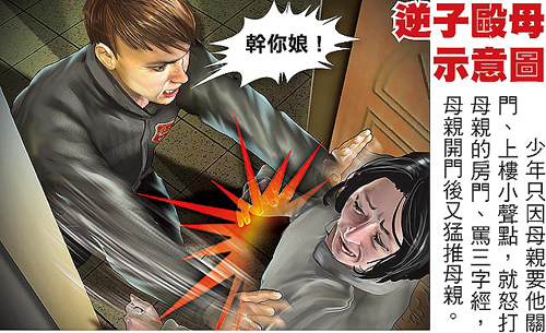 陳姓少年則向警方說,媽媽一直碎碎念,希望她閉嘴,媽媽還禁止他用計算機和手機,還趕他出門。陳姓少年說:“我無法控制情緒,從小爸媽就是這樣大吵,我也這樣,但以后我不會了。”