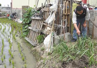 王林寶緞生前四處藏金飾,過世后,兒子王明信向警方借金屬探測器,在雞寮里搜索。 圖片來源:臺灣《聯(lián)合報》