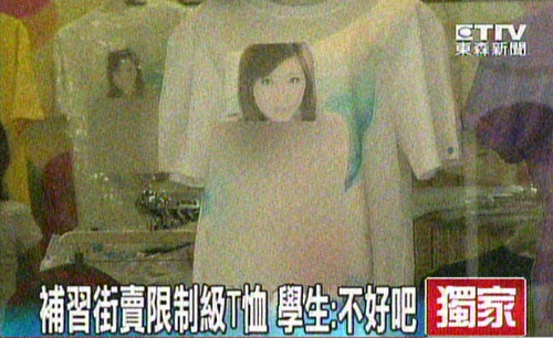 臺北補習街有服飾店公然販賣印有AV女優(yōu)圖像的T恤。圖片翻攝東森新聞