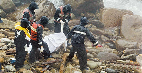 據報道,“瑞興輪”本周日晚上10時許在基隆外木山海域發生船難,船身斷成兩截,21名船員僅11名外籍船員獲救。昨陸續再發現一名外籍船員遺體,及船長郭臺生、臺籍船員何川行遺體。