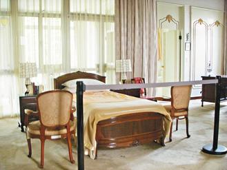 邵銘煌說,蔣介石晚年身體不佳,為方便醫療,播音樂的起居室增加單人床,布置成臥房;1975年4月5月晚間,蔣介石就是在此臥床病逝,現仍保留當時擺設樣貌。(中國臺灣網 張真瑜)