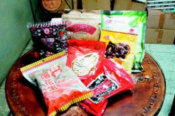 桃園縣衛生局配合南投檢警查封“翁財記”龍潭工廠的瓜子、花生、蠶豆、青豌豆4大類5006包過期食品。(圖片來源于:臺灣《聯合報》)
