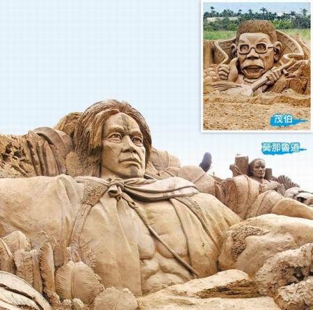 中國臺灣網1月8日消息 據臺灣《蘋果日報》報道,“2012年南投貓羅溪沙雕藝術節”昨天在風景優美的南投市貓羅溪畔登場,臺灣賣座電影《賽德克巴萊》、《臥虎藏龍》、《艋舺》、《海角七號》中的經典形象被制作成大型沙雕。(中國臺灣網 李迪)