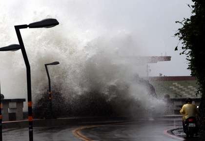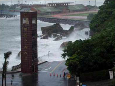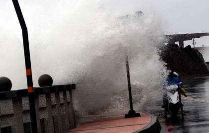 “泰利”帶來的大浪沖擊防護(hù)堤。圖片來自臺媒