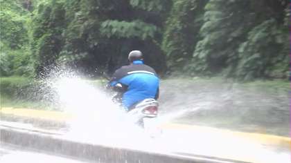 高雄“中山大學(xué)”校園門口巨浪沖上路面。圖片來自臺媒