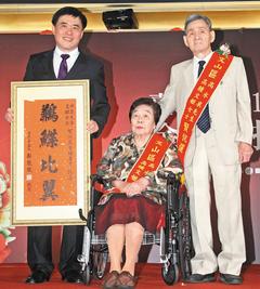 婚齡達70年的高水泉(左)與高鍾文姬(右)夫婦接受表揚。來源:臺灣《聯合報》
