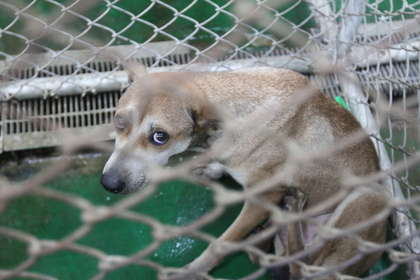 流浪狗被關在鐵籠里神情落寞。(圖片來自臺媒)