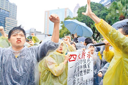 中國臺灣網(wǎng)11月27日消息 據(jù)臺灣《中國時報》報道,壹傳媒出售案預(yù)定今日簽約,學(xué)生組成的“反媒體巨獸青年聯(lián)盟”昨(26)日下午起聚集在臺當局“行政院”前,要求政府嚴審壹傳媒并購案,并在完成跨媒體“壟斷法”制定之前,不得通過任何爭議媒體并購案。因沒有等到臺“行政院長”陳沖出面說明政府立場,雖然氣溫下降至14度、大雨不斷,學(xué)生還是就地搭棚夜宿。