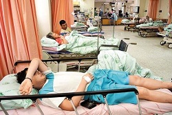 醫(yī)院急診室里躺滿了身體不適等待就醫(yī)的師生。(圖片來源:臺灣《中國時報》)