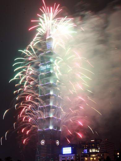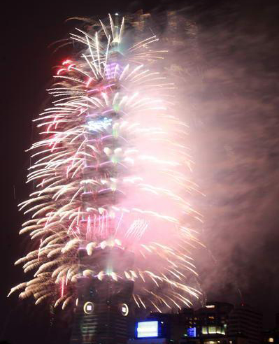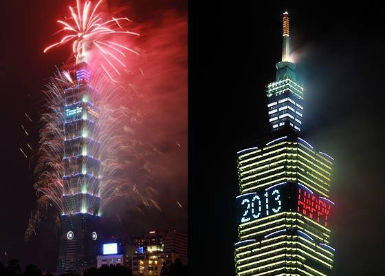和去年一樣長(zhǎng)達(dá)188秒的2013臺(tái)北101跨年煙火秀精彩登場(chǎng),估計(jì)有85萬(wàn)人到場(chǎng)觀賞。圖片來(lái)自臺(tái)灣今日新聞網(wǎng)