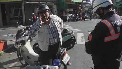違規(guī)男子動(dòng)作頻頻,質(zhì)疑稱(chēng)警員沒(méi)有權(quán)力開(kāi)罰單(圖片來(lái)源:臺(tái)灣媒體)