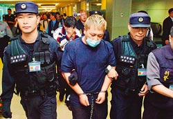 發生在高鐵車廂和“立委”盧嘉辰服務處的“行李炸彈案”嫌犯胡宗賢(前中)、朱亞東(后中)16日自大陸押回臺灣。