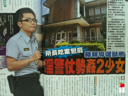今天出刊的《壹周刊》報道,陳警駕警車載少女到河堤旁、寺廟前及汐止八連變電所等附近空地,車震逞欲,甚至穿著警察制服,要求少女口交,有時載她到休息僅600元新臺幣的汽車旅館發(fā)生性關(guān)系。