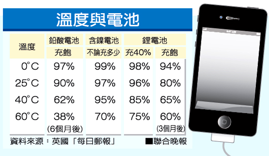 溫度與電池。圖片來源:臺灣《聯合晚報》