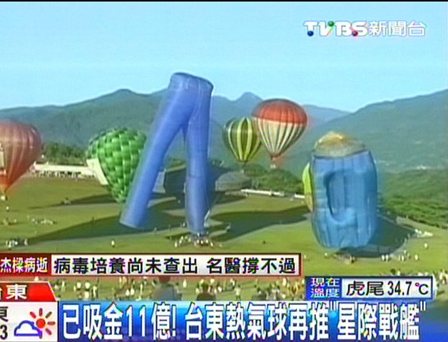 中國(guó)臺(tái)灣網(wǎng)8月5日消息 據(jù)臺(tái)灣TVBS電視臺(tái)報(bào)道,臺(tái)東熱氣球嘉年華,活動(dòng)一波接一波,從6月到現(xiàn)在已經(jīng)吸引70萬(wàn)人次來(lái)造訪,帶來(lái)11億(新臺(tái)幣,下同)觀光財(cái),主辦單位今天又推了新的熱氣球,希望可以突破去年的88萬(wàn)人次。