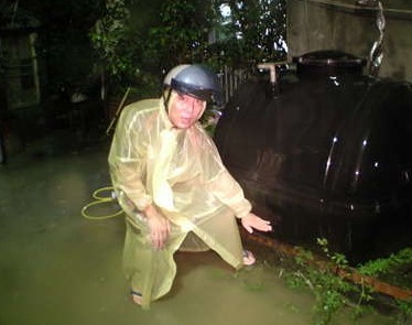 陳姓里民表示積水最深達到膝蓋高度。(圖片來自臺媒)