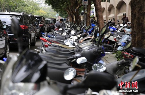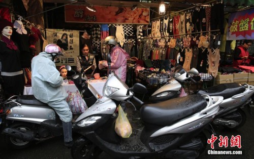在臺灣,摩托車被稱為“機車”,不少家庭都是3、4輛,臺灣男女老少大多數會騎摩托車。大街小巷,排滿了摩托車,密度之高居全球第一。摩托車陣已經成為臺灣城鎮的一道著名景觀,臺灣享有“摩托車背上的寶島”之美譽。圖為摩托車陣穿梭在臺北街頭。中新社發 趙雋 攝