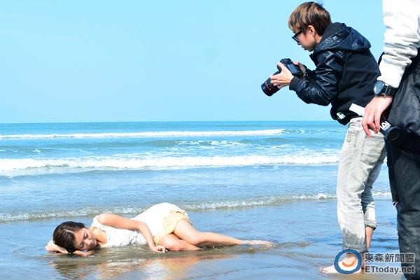臺灣豆花妹躺10度海水,拍攝全濕身微性感美照。(臺媒圖)