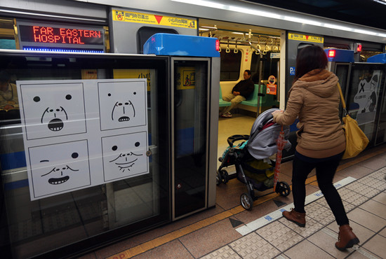 坐捷運(即地鐵)也可看插畫,臺北市觀光傳播局表示,從4日起,臺北捷運忠孝復興站、市府站、圓山站的月臺門,可看到掰掰啾啾、迷路等插畫家作品。(文、圖/臺灣“中央社”)