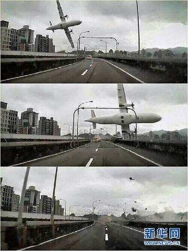 這是2月4日一輛汽車上行車記錄儀拍攝到的臺灣復(fù)興航空客機從高架橋上空墜落的畫面(拼版圖片)。新華社發(fā)