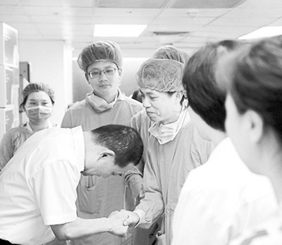 新臺市副市長侯友宜(左)慰問醫護。圖片來源:臺灣《聯合報》
