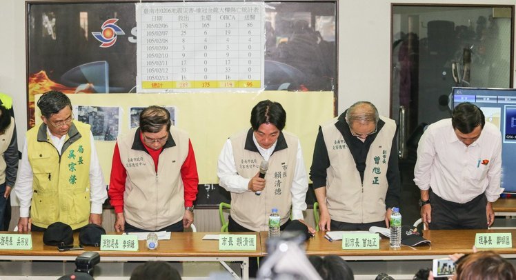 臺(tái)灣南部地震搜救歷時(shí)8天,臺(tái)南市長(zhǎng)賴清德13日下午宣布“救援完畢”。(圖片來源:臺(tái)灣《聯(lián)合報(bào)》)