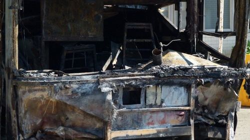 火燒車后駕駛座面目全非。(圖片來源:臺灣《聯(lián)合報》)