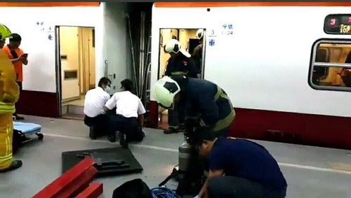 臺北市消防局獲報,臺鐵107次自強號9月9日早上7時36分通過萬華站東主正線時,有一名女性旅客從月臺掉落至路線內,遭列車撞擊。來源:臺灣“中央社”