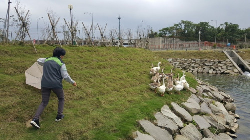 他強調,鴨鵝是雜食性,上岸覓食也是天性,不是餓到受不了才登岸找東西吃,近來島內防范禽流感疫情,呼吁游客不要喂食或靠近當地鴨鵝。